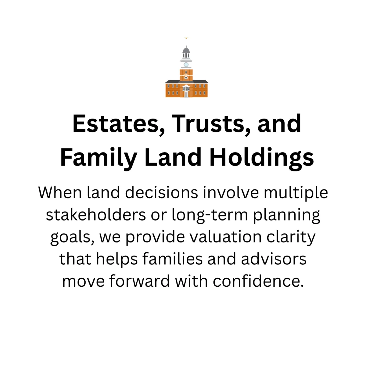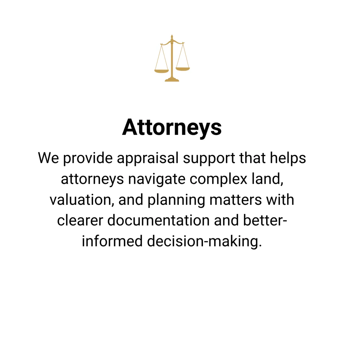 We provide well-supported appraisal work grounded in recognized valuation principles and tailored to the specific property rights and restrictions involved.