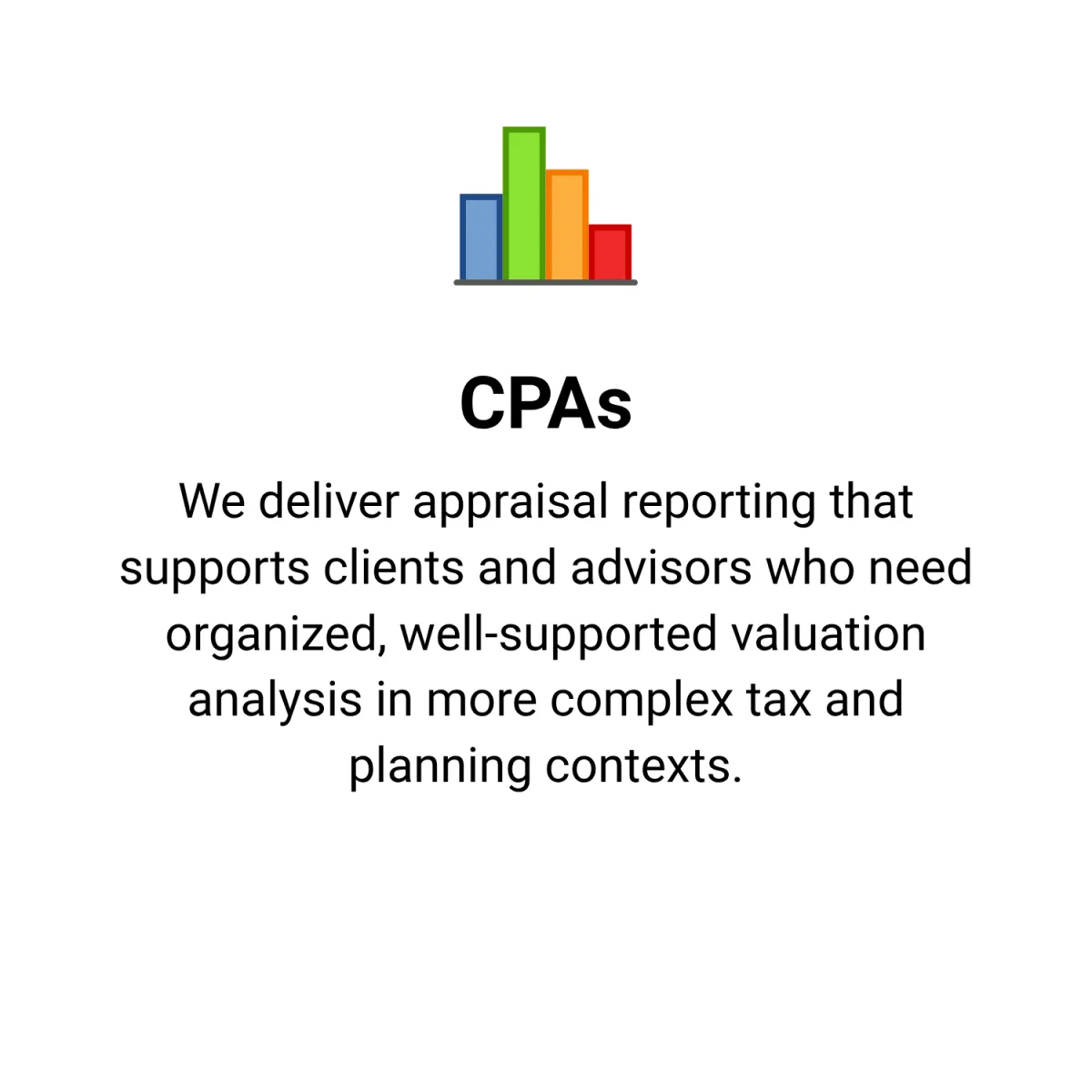 Our reports are developed with the understanding that attorneys, CPAs, and financial planners often need valuation work that is organized, understandable, and professionally presented.